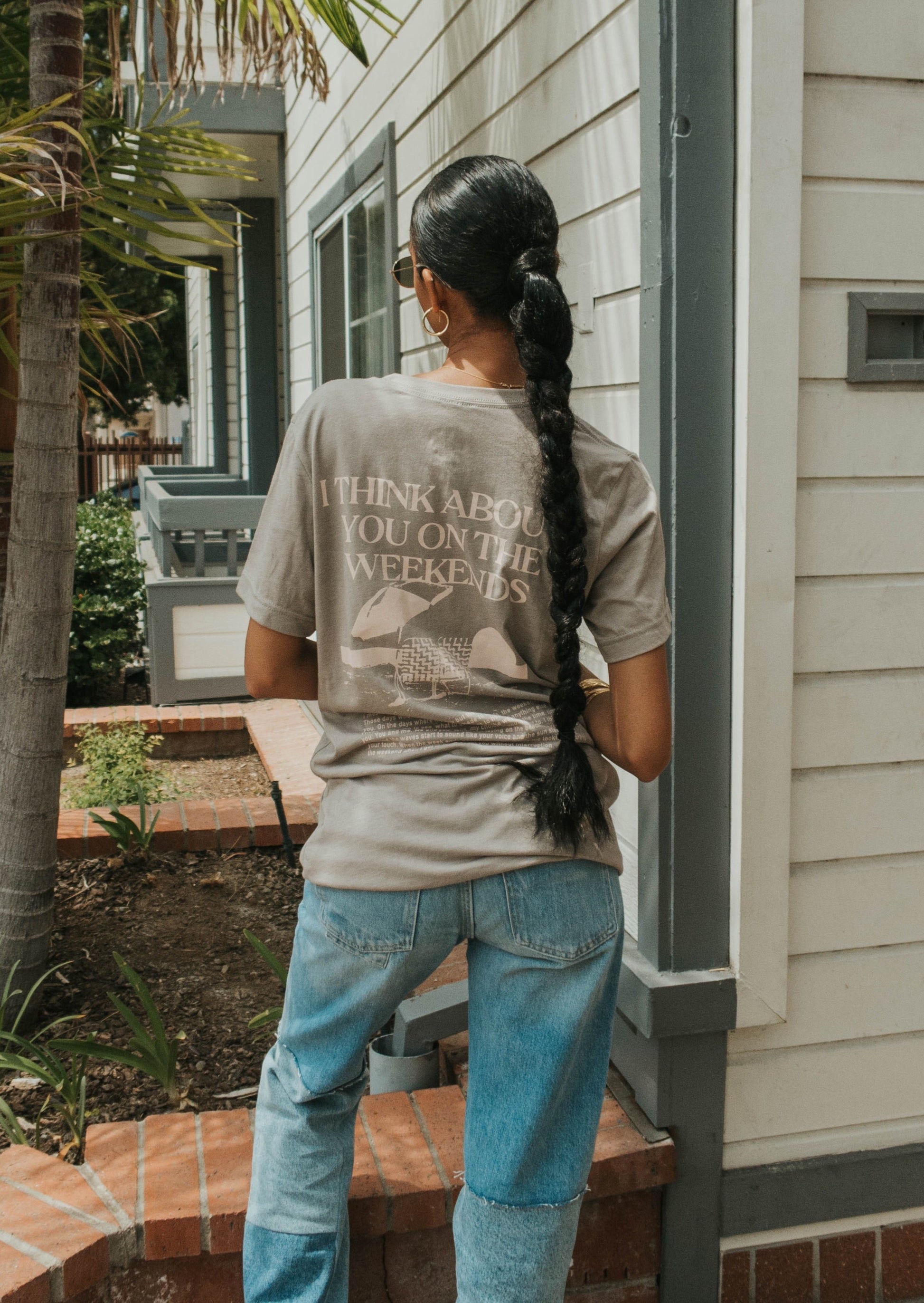 Reintroducing the I Think about You on the Weekends sweater...but now it's a shirt—the perfect comfy t-shirt that feels like love. Due to popular demand, the limited-run design is back!