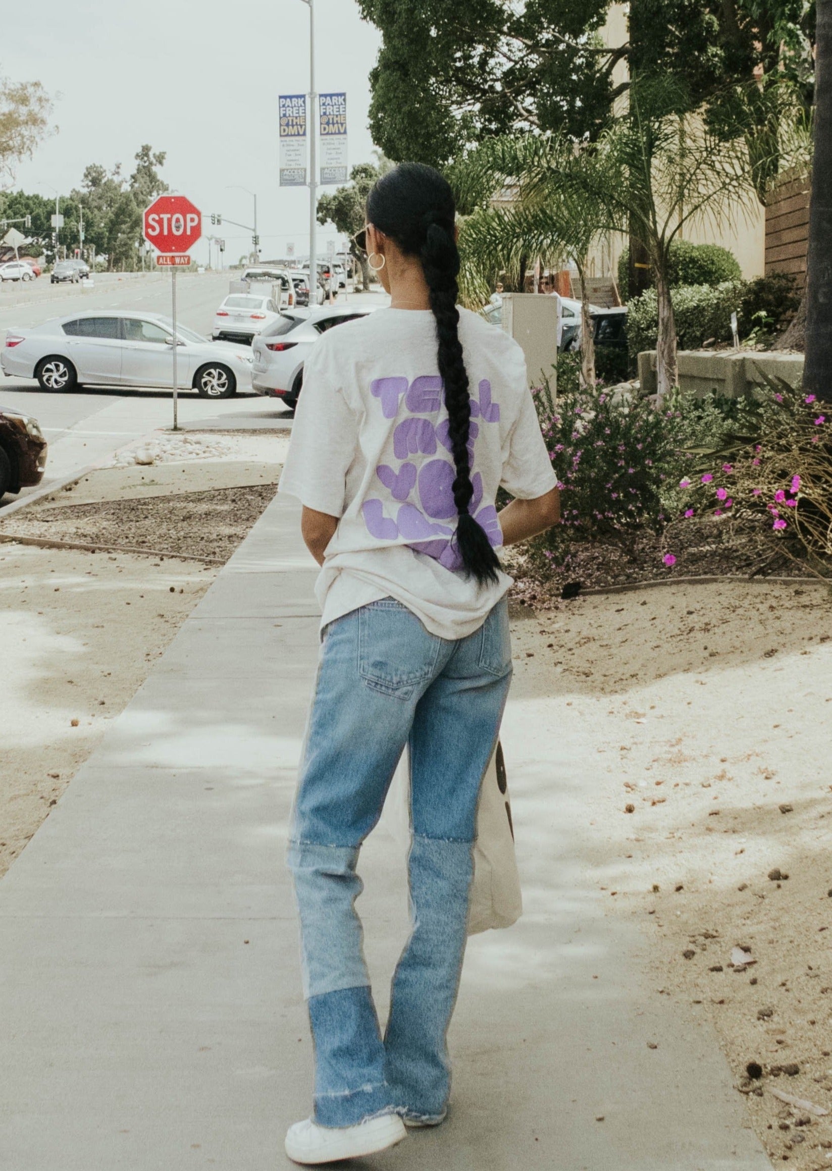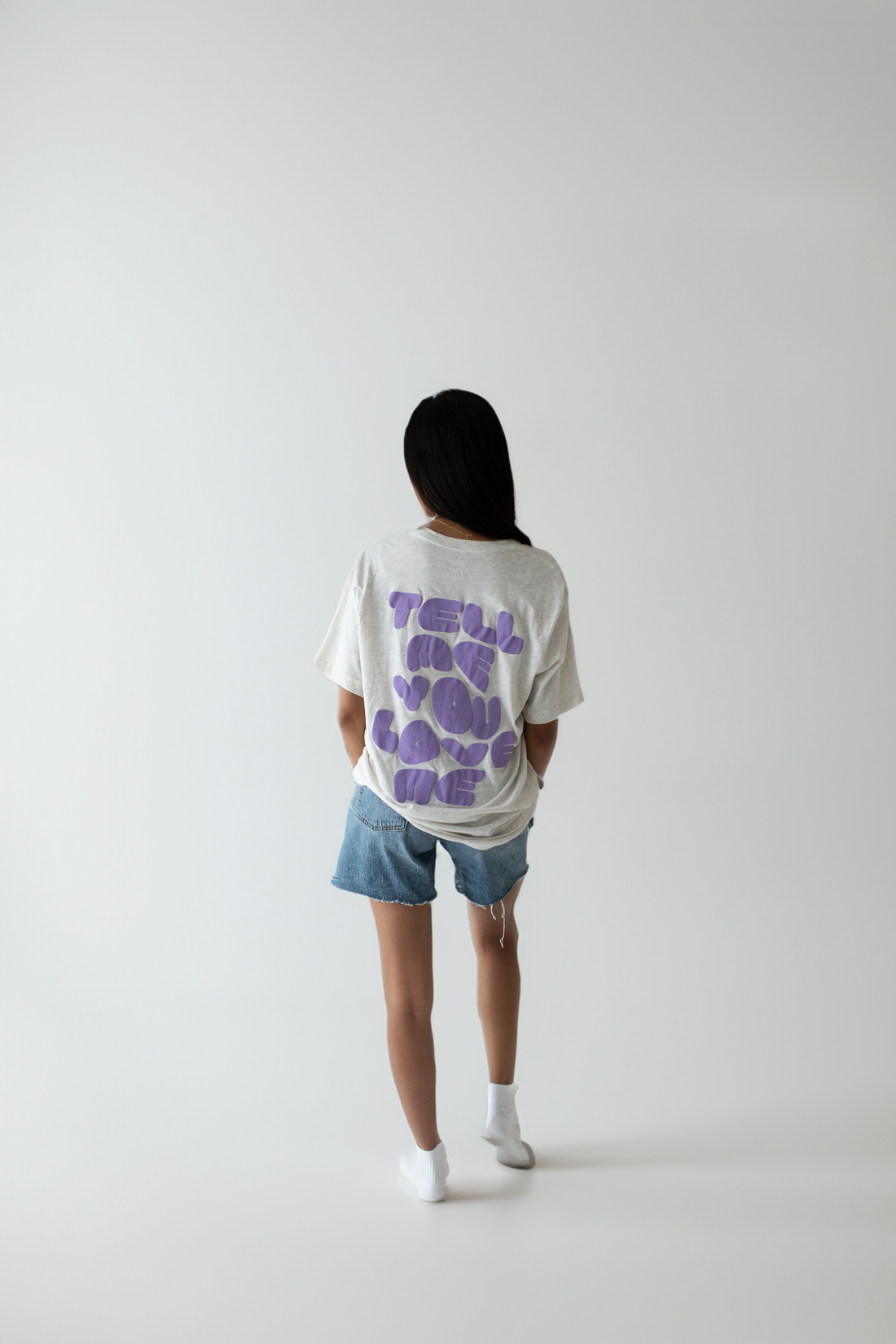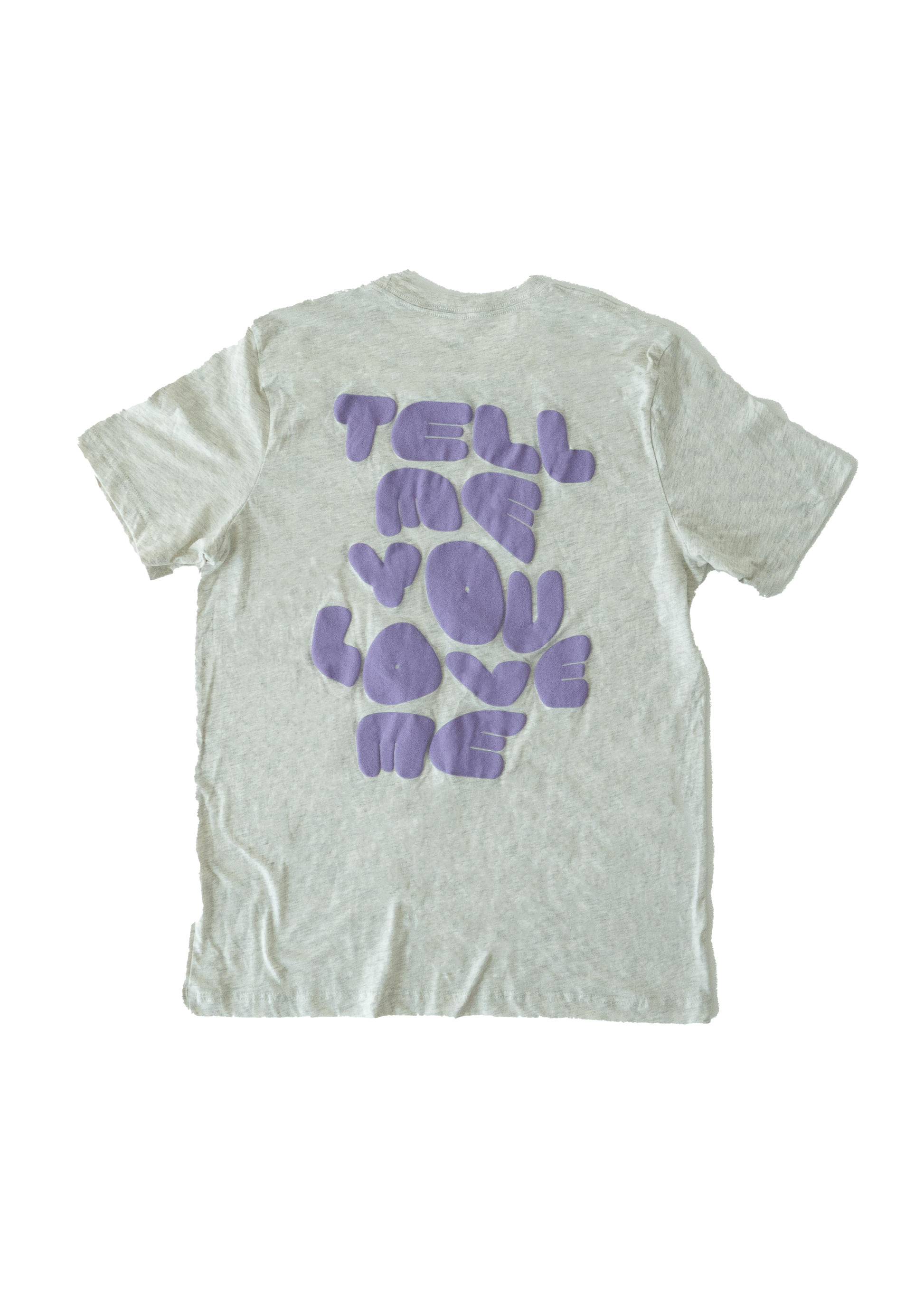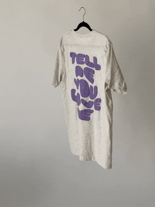 Reintroducing the Tell Me You Love Me tee—the perfect comfy t-shirt that feels like a hug. Puff ink with front and back design, the first ever merch to drop for Love Club before it was a whole NBHD.